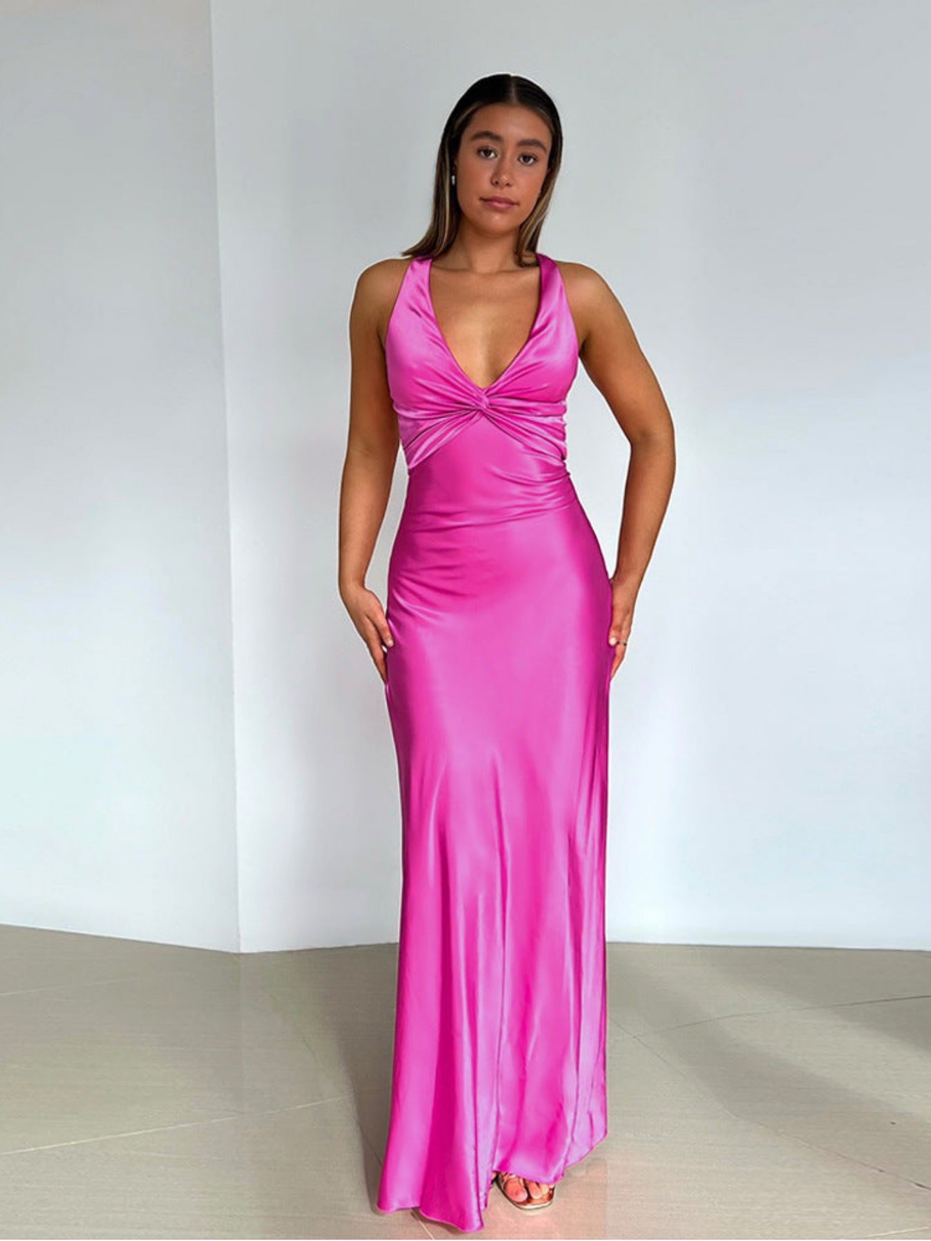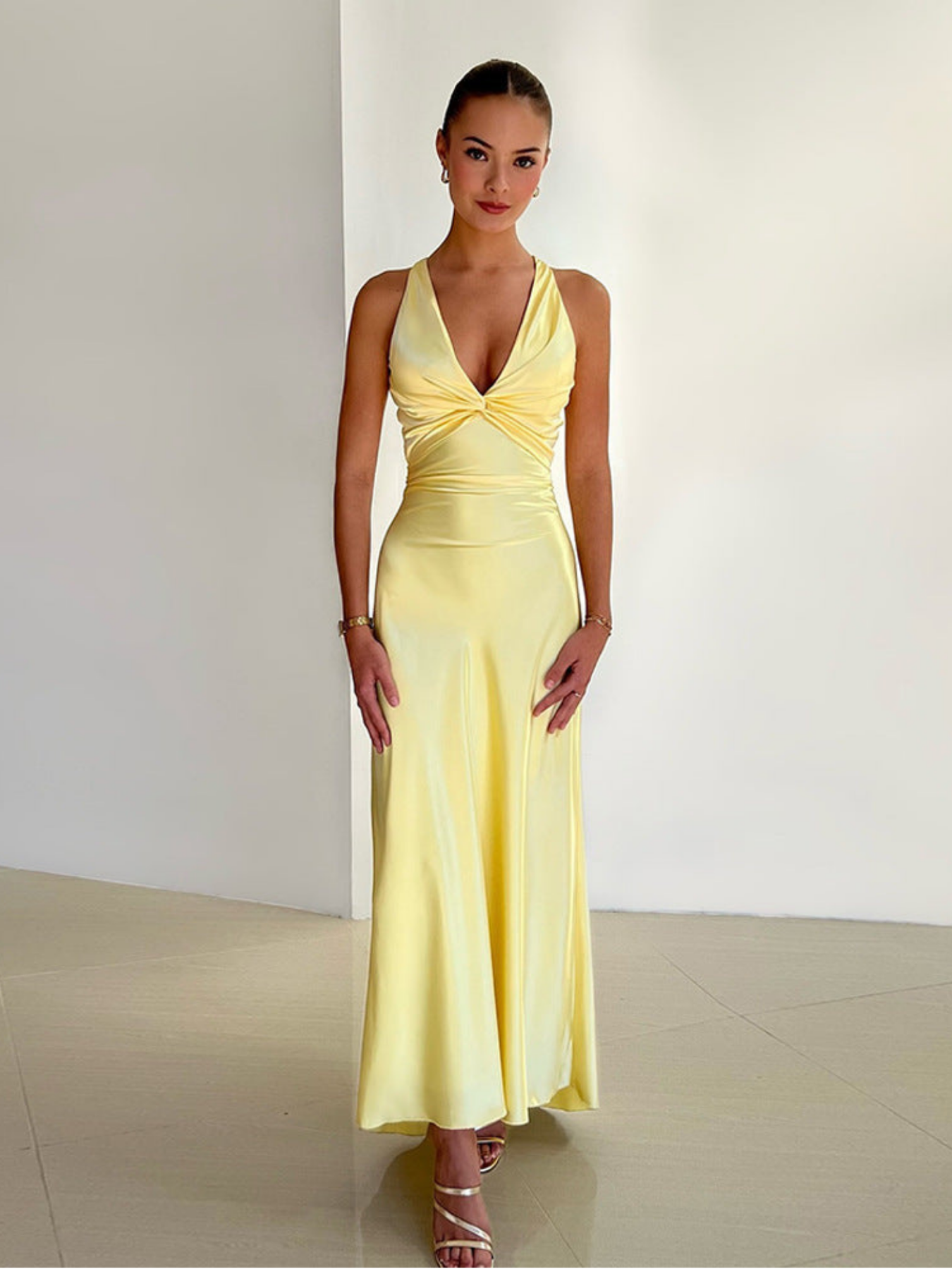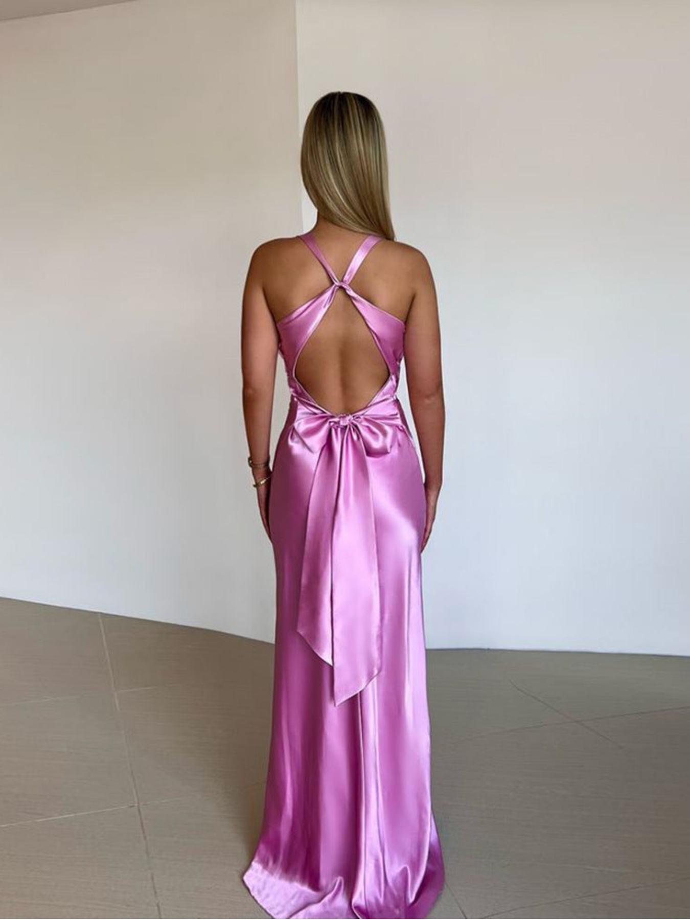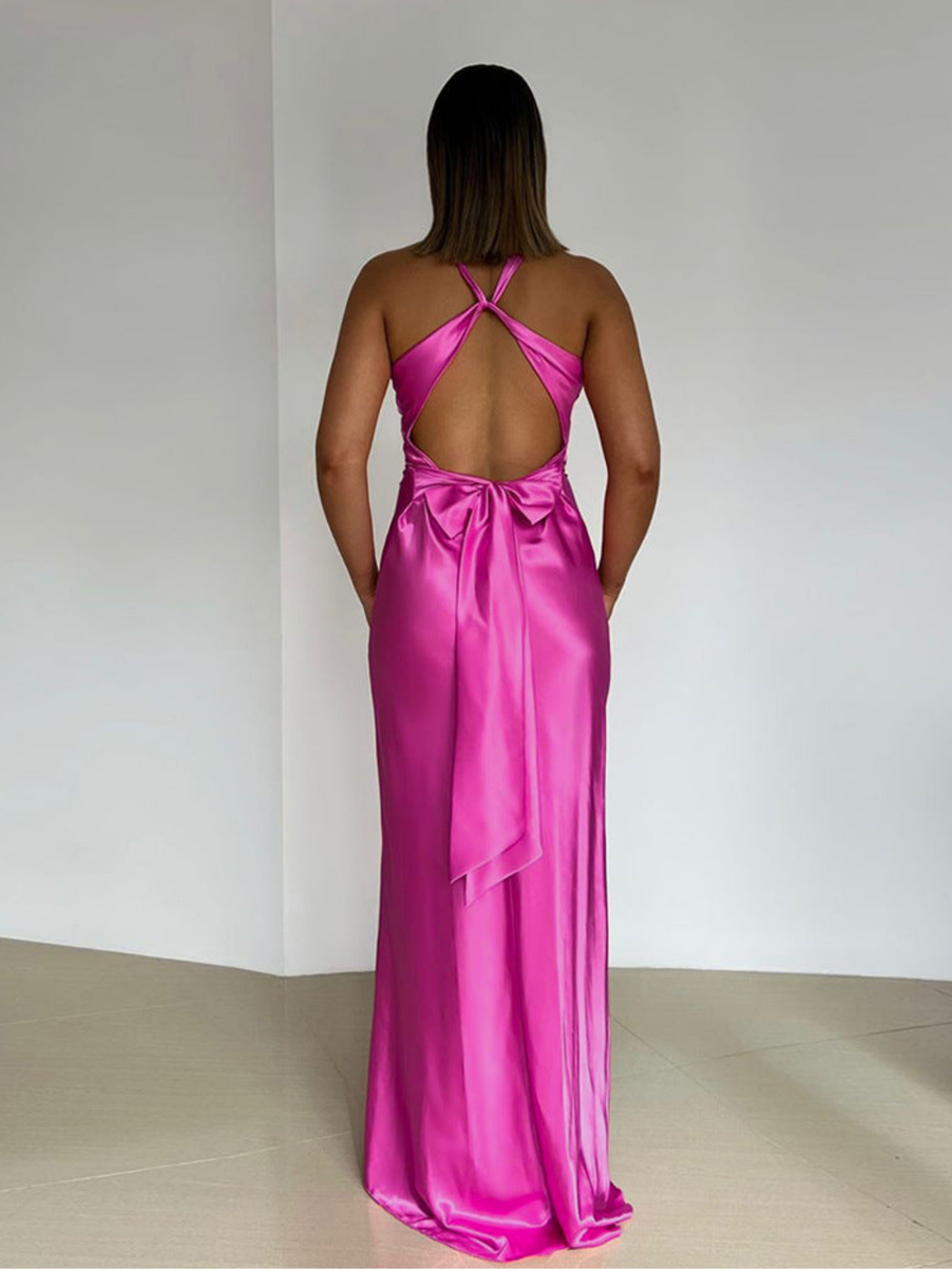Silvia er den perfekte kjolen for deg som vil skinne med eleganse og femininitet. ✨ Den myke satengen smyger seg vakkert rundt kroppen, mens den åpne ryggen og den lekre sløyfen gir et ekstra touch av luksus. 💛 Enten du går for solgul glamour eller forførende rosa, vil du føle deg uimotståelig. 💕 Gjør deg klar for komplimenter – dette er kjolen som stjeler showet! 💃